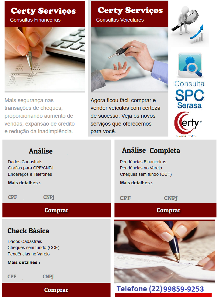 Telefone(22) 99859-9253 ou certy@certyservicos.com.br
